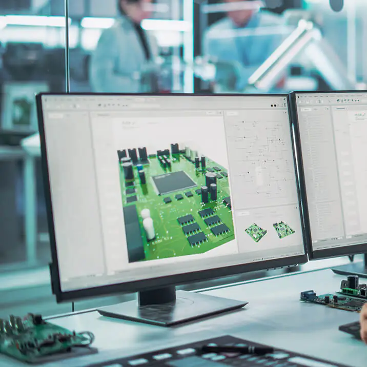 Our engineers can create printed circuit boards from scratch or help you finish your own development. We will gather requirements, select components, design PCB schematics and layout, and create a prototype. If required, we will also help you find a manufacturer. The team uses professional tools such as Altium Designer, Cadence Allegro, Eagle Cad, OrCad, and KiCad.